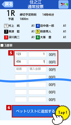 予想する組番と金額を入力します。
