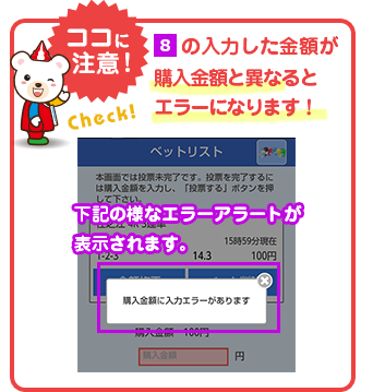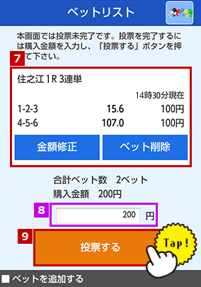 投票内容の確認と購入金額を入力します。