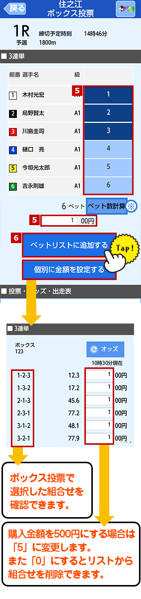 3連単を「ボックス投票」で投票します。