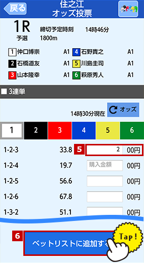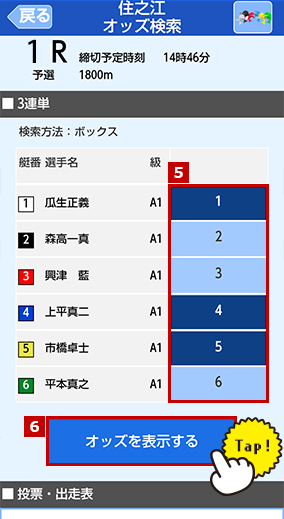 3連単を「オッズ投票」で投票します。