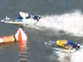 トップタイミングから秋元が1マークを先制。佐藤がまくりで肉薄するも秋元はしっかり押し切り、バックストレッチでグイグイ艇を伸ばします。秋元は次の2マークも冷静に旋回するとあっさりと安全圏を構築。秋元が文句なしのレースで優勝戦の白いカポックを手にしています。残り1枠を巡る稲田と峰の一進一退の攻防は3周1マークで稲田が大きく膨らみ勝負あり。峰がファイナルに滑り込んでいます。