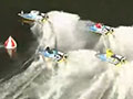 定松がピット離れで立ち遅れると石野が1つ内へ入り、123/546の並びとなります。トップスタートで踏み込んだ馬場が1マークを先マイ。馬場は瞬く間に先頭に躍り出ると、次のコーナーも先に回ります。早々に安全圏へと持ち込んだ馬場はそのまま守り切ってフィニッシュ。ポイント挽回に成功しています。馬場に続いた辻が次位入線。3番手には、2周2マークで末永を引き波に沈めた佐々木が入っています。