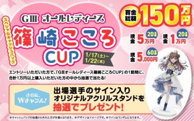 G3オールレディース篠崎こころCUP、総額150万円キャッシュバック&出場選手サイン入りアクリルスタンドが当たる!