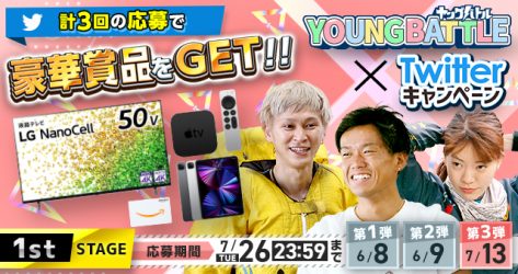 総計約250万円相当が100名様に当たる!ヤングバトル×Twitterキャンペーン! AppleTV4KやAmazonギフト券などが当たる1stSTAGEのエントリー受付中!