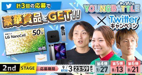 今年9月に開催予定の第9回ヤングダービー(9/20~9/25、多摩川)を通じてヤングレーサーを盛り上げるべく、豪華賞品が当たるWEBキャンペーン第2弾を実施中。大型テレビやタブレットなどの賞品をGETして、ボートレースライフをもっと充実させよう。
