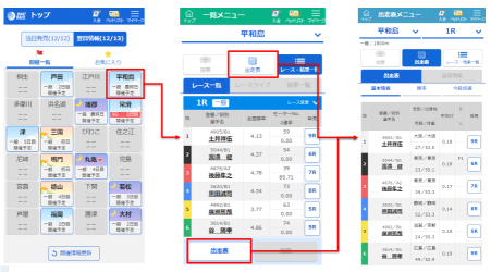 当日開催の最終レース発売終了後、翌日開催場の一覧や出走表が確認できるようになります。