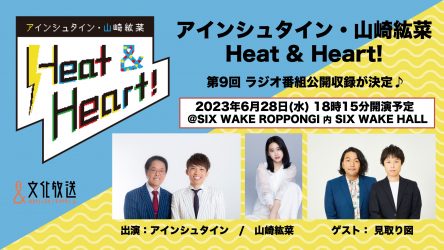 お笑いコンビのアインシュタインと女優の山崎紘菜がダブルパーソナリティを務める「アインシュタイン・山崎紘菜 Heat & Heart!」で6月28日(水)18時15分より公開収録イベントが開催されます!