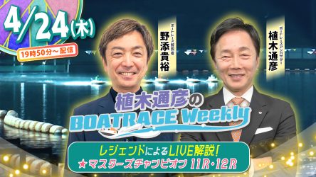 「植木通彦のボートレースウィークリー」4月24日(木)19時50分から野添貴裕さんが【マスターズチャンピオン11R・12R】をLIVE解説!