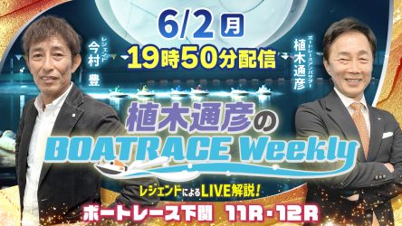 今回の「植木通彦のボートレースウィークリー」は6月2日(月)19時50分からLIVE配信!今村豊さんがリモート出演!植木通彦ボートレースアンバサダーと地元【下関11R・12R】をLIVE解説!