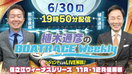 熊谷直樹さんがリモート出演!「植木通彦のボートレースウィークリー」6月30日(月)19時50分から【住之江ヴィーナスシリーズ11R・12R優勝戦】をLIVE解説!