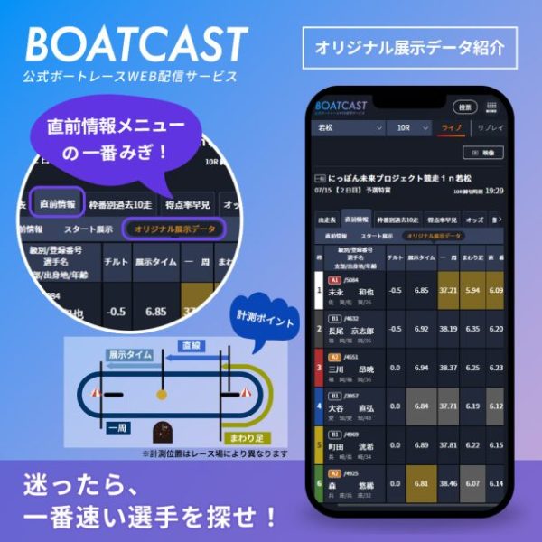 今回は、ボートレースの予想に役立つ「オリジナル展示データ(4つの展示タイム)」をご紹介します!