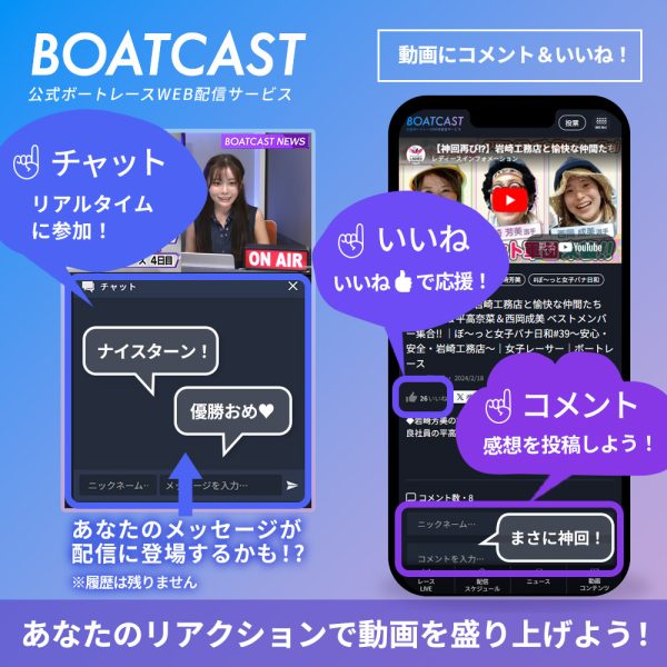 応援の気持ち、届けよう!動画にコメント&いいね【BOATCAST通信】