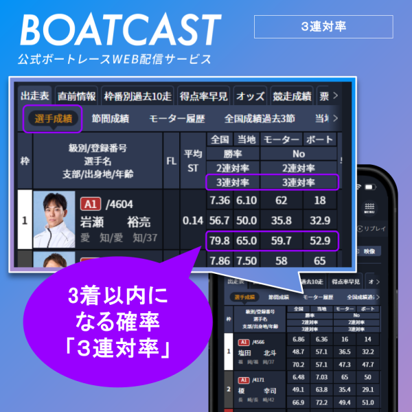 3連対率も見れる!BOATCASTグレードアップ情報!!