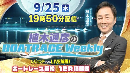 今回の「植木通彦のボートレースウィークリー」は9月25日(木)19時50分からLIVE配信!今回は植木通彦ボートレースアンバサダーが【ボートレース若松12R優勝戦】をLIVE解説!質問も大募集!