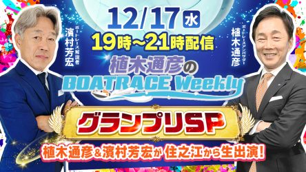 12月17日(水)19時から「植木通彦のボートレースウィークリー グランプリSP」をLIVE配信!濱村芳宏さんが住之江から生出演!植木通彦ボートレースアンバサダーとグランプリを徹底推理します!