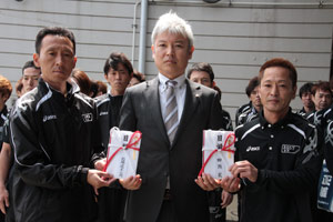 また、先日開催されたGIマスターズチャンピオンに優勝した田頭実選手とボートレース若松で開催されたGW特選競走に出場した選手一同から寄付が行われました。