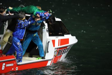 笹木選手の初勝利を祝福するため、ボートレースファンの皆様が見守る中、水神祭が行われました。