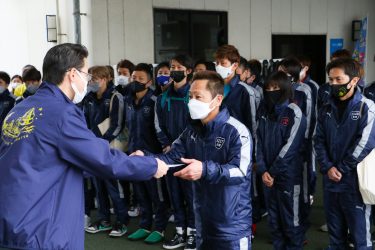 令和5年2月12日(日)、ボートレース若松にて開催の「G1第69回九州地区選手権競走」初日の第6レースにおいて、田頭実選手(福岡)が2,500勝を達成しました。田頭選手には、2,500勝を記念して功労賞が贈られ、レーサー関係者に祝福されました。