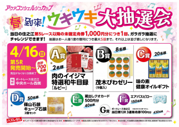 当日のボートレース住之江第5レース以降の未確定舟券1,000円分につき1回ご参加いただける抽選会を実施します。