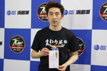 日本モーターボート選手会会長杯にて、静岡支部の徳増秀樹選手が1コースからスタートタイミング.09の気合のスタートを放ち、勢いそのままに見事な逃げを決めました。