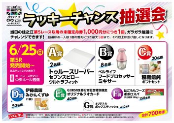 当日のボートレース住之江第5レース以降の未確定舟券1,000円分につき1回ご参加いただける抽選会を実施します。