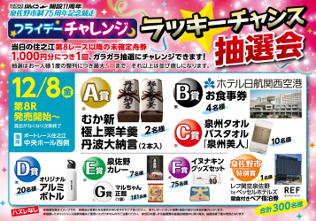 12月8日(金)から開催いたします、「BTSりんくう開設11周年 泉佐野市制75周年記念競走」の開催情報です。