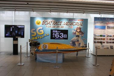 また、市役所本庁舎ロビーにカウントダウンパネルと展示用ボートを設置し、来庁者に向けてSG競走の開催をPRした。