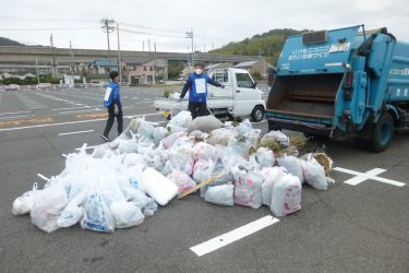 11月1日(金)朝7時に施行者職員・(一財)日本モーターボート競走会児島支部・(公社)日本モーターボート選手会岡山支部・当レース場で開催業務等に携わっている民間事業者の 138名が集合して、レース場周辺の海岸と道路において清掃活動を行い、ビニール袋やペットボトル等の可燃ごみ・空き缶等の不燃ごみ等、ゴミ袋にして210袋・約300キロを回収しました。
