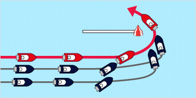 1コースから進入し、第1ターンマークの最内を最初にターンし、そのまま他艇に先頭を譲ることなく1着となる決まり手の一種。