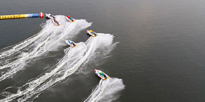 ボートが走った後にできる引き波のこと。引き波を超えていく際は通常よりモーターのパワーが必要となり、加速する上では不利となる。そのため、レーサーはいかに引き波の影響を受けずに走るかを意識して走っている。