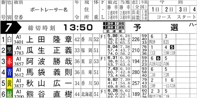 各レースに出走するメンバー一覧表。そのほか、レーサーの基礎的な情報や過去成績など、予想の参考となる情報も付属掲載されている。ボートレース場、ボートレースチケットショップなど、各場の入口などで無料で入手できる。
