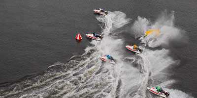 レーサーが水面の中に落ちてしまうケースはこの3つ。■転覆ボートがひっくり返ってしまうこと。■落水ボートからレーサーだけが水面の中に投げ出されること。■沈没ボートが沈んでしまうこと。他の艇とぶつかってボートに穴が開くとこうなる。これは待機行動時に起こることもある。