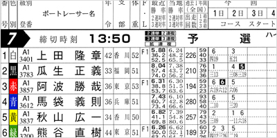 各レースでの出場レーサーの組み合わせ。ビッグレースの予選では、各レーサーが1~6号艇まで均等に振り分けられる番組が多い。