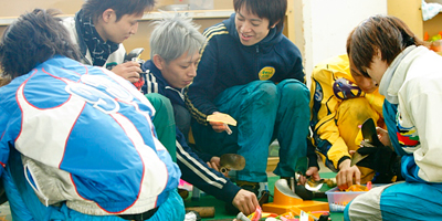 ピット内にあるプロペラを整備する部屋。同支部や同期レーサーなどが談笑しながら整備する姿もよく見られる。