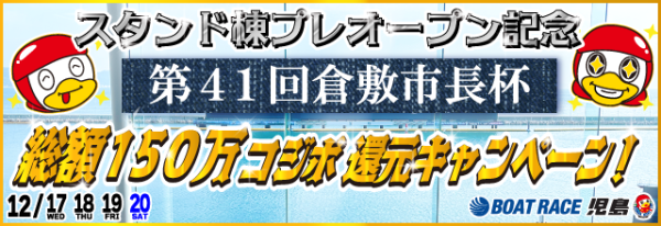 児島スタンド棟プレオープン記念第41回倉敷市長杯において、総額150万円相当ポイント還元CPを実施!