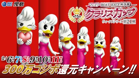 ヴィーナスシリーズ第21戦マンスリーBOAT RACE杯争奪第15回クラリスカップにおいて、総額300万円相当ポイント還元CPを実施!