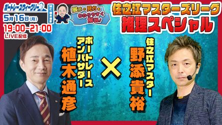 住之江マスターズリーグを徹底推理!明日19時から「ボートレースウィークリー 住之江マスターズリーグ 推理スペシャル」をLIVE配信!住之江マスター野添貴裕さんが住之江からリモート出演!!BOATCASTとYouTubeで配信!
