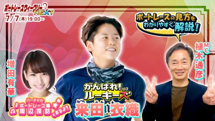 7月7日(木)19時からLIVE配信!時代を担うルーキー情報満載!!植木通彦ボートレースアンバサダー「ボートレースウィークリーNEXT」!来田衣織選手を紹介!