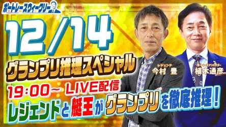 2人のレジェンドがグランプリを徹底推理!明日19時から「ボートレースウィークリー グランプリ推理スペシャル」をLIVE配信!植木アンバサダーとレジェンド今村豊さんが自らの経験からグランプリを紐解きます!BOATCASTとYouTubeで配信です!