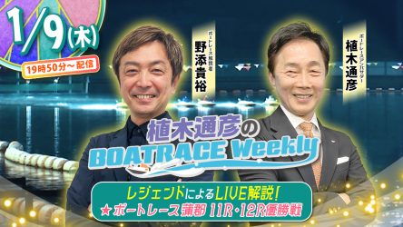 2025年最初の「植木通彦のボートレースウィークリー」は1月9日(木)19時50分からLIVE配信!野添貴裕さんが植木通彦ボートレースアンバサダーと【蒲郡11R・12R優勝戦】をLIVE解説!
