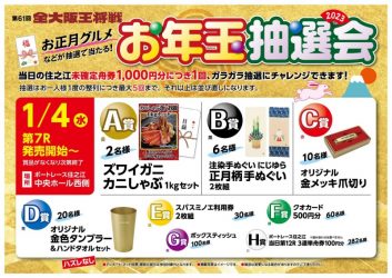 当日のボートレース住之江第5レース以降の未確定舟券1,000円分につき1回ご参加いただける抽選会を実施します。