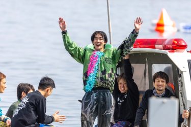 「備南競艇事業組合49周年記念競走」最終日の第1レースに出走した登録番号5353号 草川壮良選手(滋賀支部)が、6コースから展開をとらえた差しで、2024年5月のデビューから124走目にして待望の初勝利を飾りました!レース後には2マーク前で水神祭が行われ、場内のお客様から温かい声援を受けました。