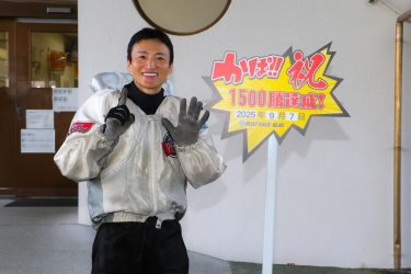 令和7年9月7日(日)、ボートレース若松にて開催の「若松夜王シリーズ第2戦アヤメカップ海属王決定戦」4日目の第5レースにおいて、福島勇樹選手(東京)が通算1,500勝を達成し、選手・関係者から祝福されました。