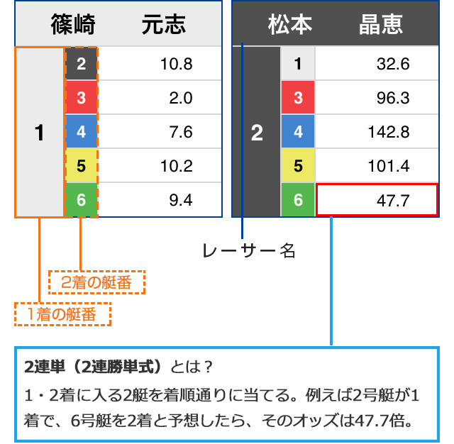 オッズ【2連単・2連複】の見方について
