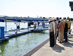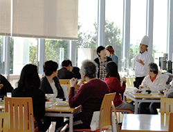 訓練見学や訓練に使用しているモーターボートと記念撮影等を行った後、食堂で昼食を体験していただきました。