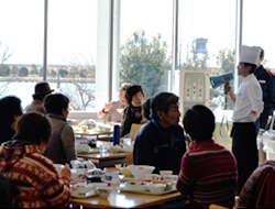 訓練見学や訓練に使用しているモーターボートと記念撮影等を行った後、食堂で昼食を体験していただきました。