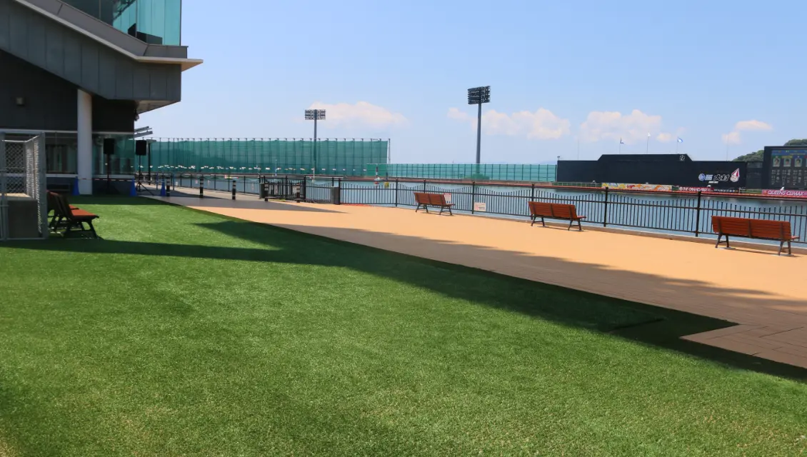 “Gruun Omura” is a community park located outdoors on the first floor, and it’s a huge hit with children and adults alike. It has everything from bouldering to skateboarding, including the largest skate park in Nagasaki Prefecture! Between watching the heart-pounding action of the races and getting your blood pumping by moving around, you and your friends and family can have a whole day full of sports.