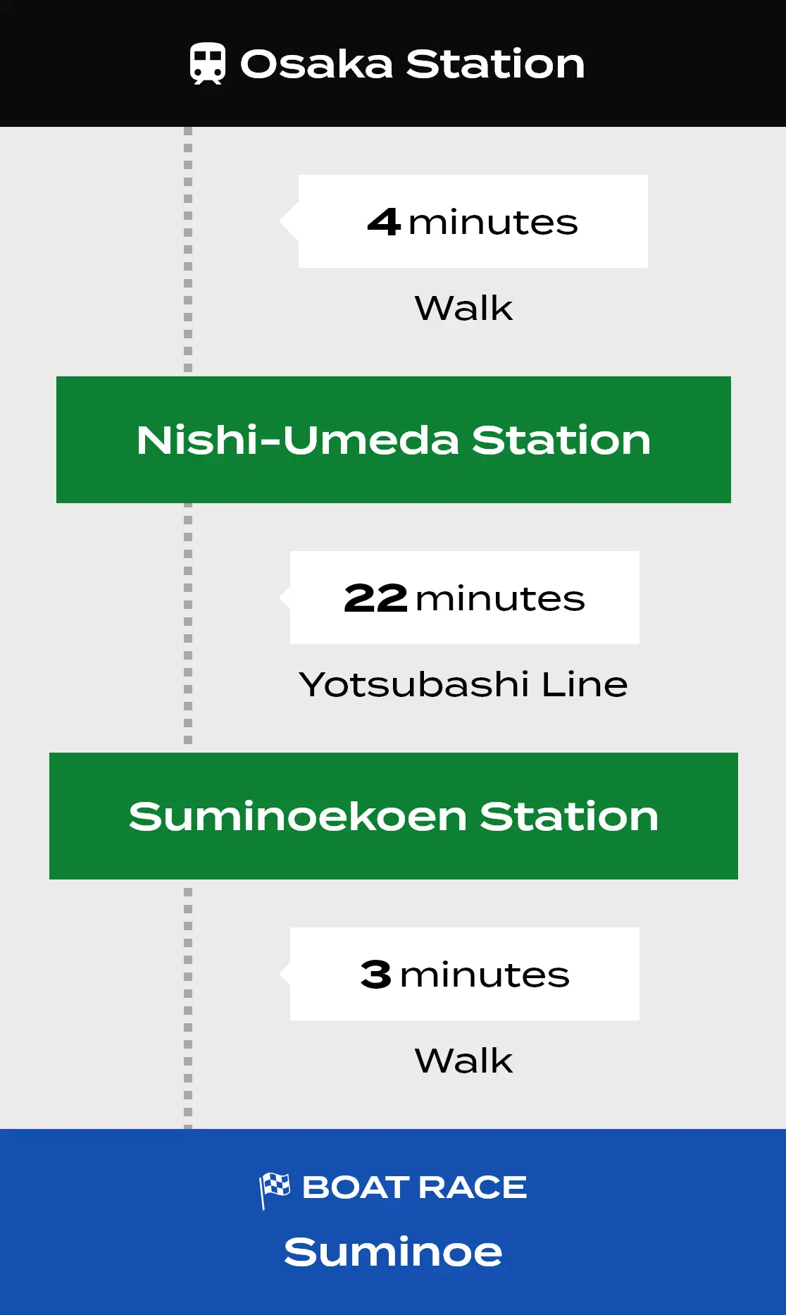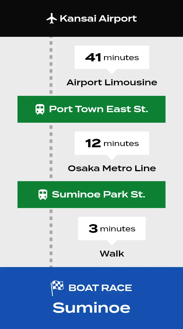 Boat Race Suminoe is only about half an hour from the Osaka city center! You can access it easily both from the Kansai International Airport, as well as from one of the main train stations.