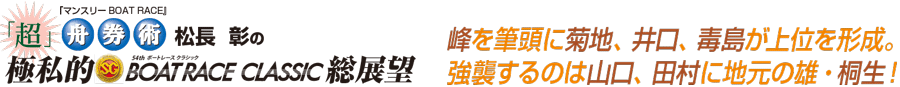 SGやGIを勝つための条件は「そのレースに出場すること」、これに尽きる。今回のクラシックも、そこをクリアすれば誰にでも優勝のチャンスはある。ただ、その候補者をモーター抽選前に絞るのが困難…というより無理な話なのだ。だからといって、実績上位や近況好調な選手を挙げるのでは能がない(そもそも、そういうものこそ通用しなくなっている)。根拠はあとで書くとして、ここは筆者が考える優勝候補、活躍しそうな選手を挙げてみる。