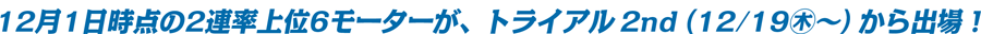 [SG第34回グランプリ・トライアル2nd(12/19(木)~)に、12/1(日)時点の2連率上位6基が出場します。]